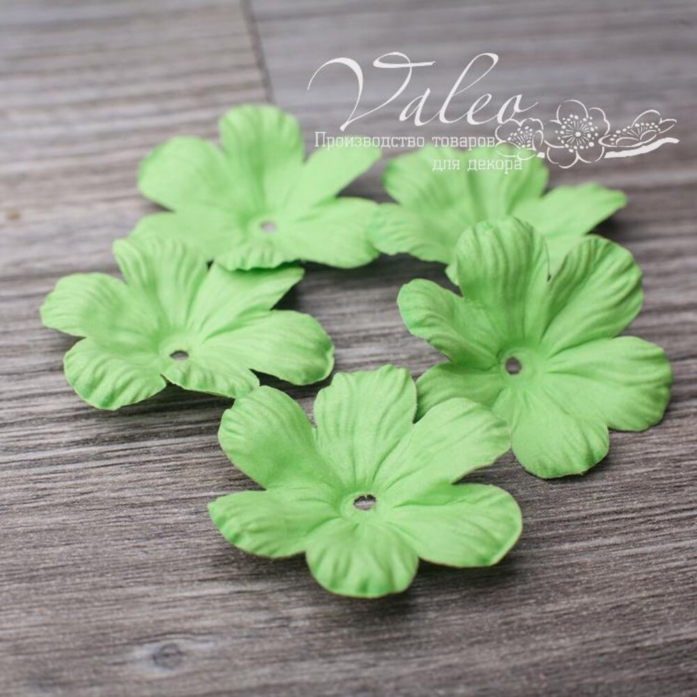 Паперові квіти від виробника Valeo. У наборі 5 квіток зеленого кольору розміром 40мм. Прекрасна прикраса для запрошень, листівок, сторінок альбомів.