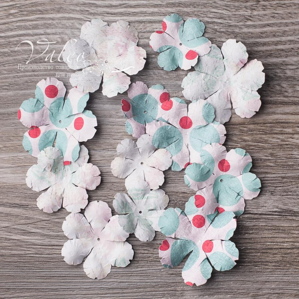 Паперові квіти від виробника Valeo. У наборі 4 квітки 45мм, 4 квітки 40мм та 4 квітки 30мм пастельних відтінків з візерунком. Прекрасна прикраса для запрошень, листівок, сторінок альбомів.