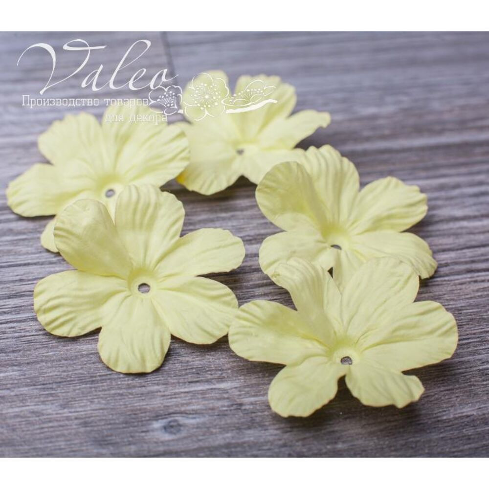 Паперові квіти від виробника Valeo. У наборі 5 кольорів жовтого кольору розміром 50мм. Прекрасна прикраса для запрошень, листівок, сторінок альбомів.