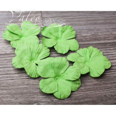 Паперові квіти від виробника Valeo. У наборі 5 квіток зеленого кольору розміром 50мм. Прекрасна прикраса для запрошень, листівок, сторінок альбомів.