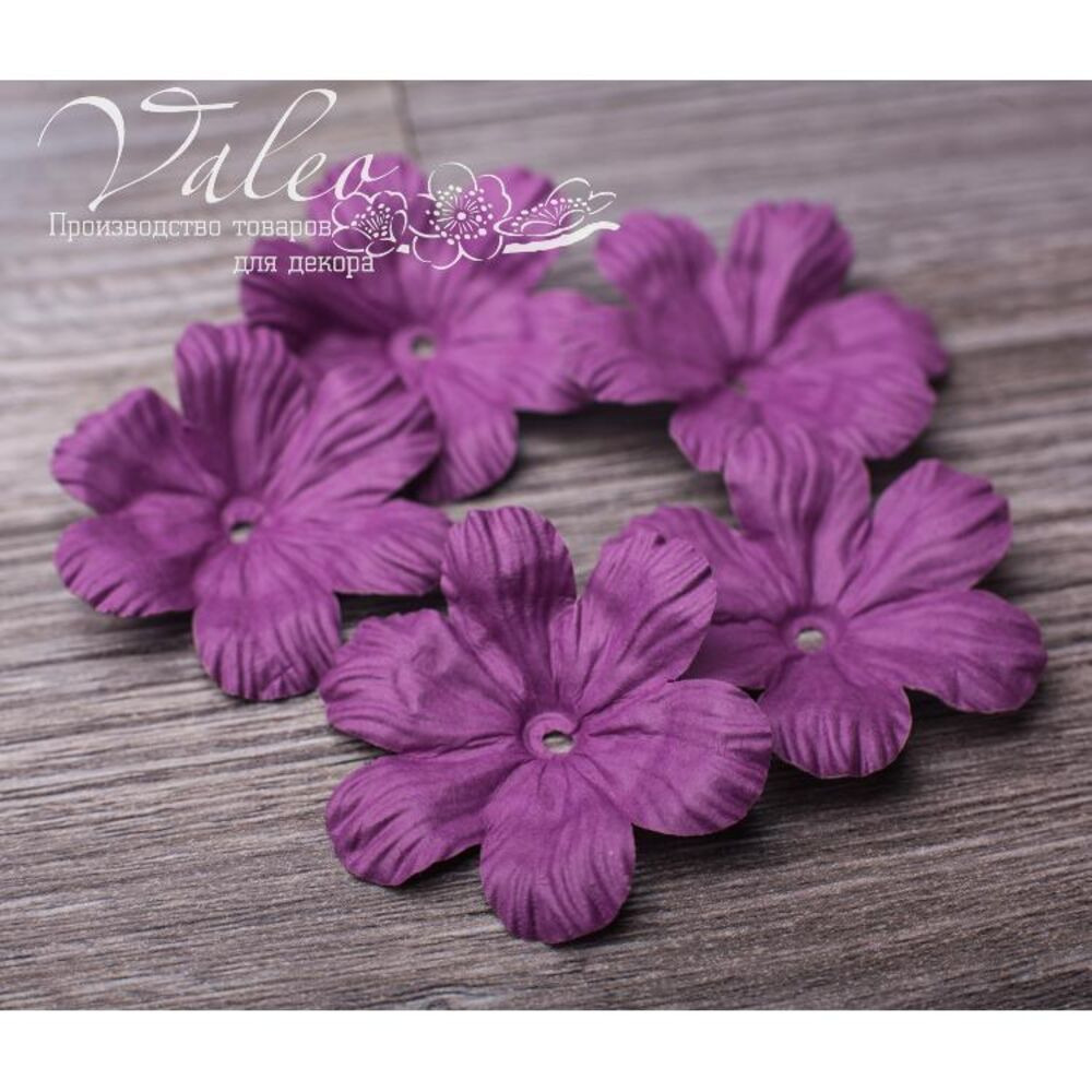Паперові квіти від виробника Valeo. У наборі 5 квіток сливового кольору розміром 50мм. Прекрасна прикраса для запрошень, листівок, сторінок альбомів.