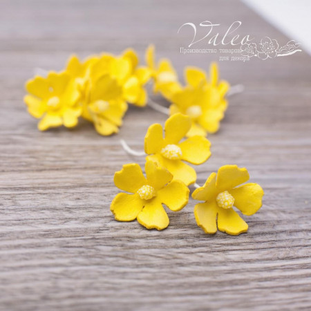 Набір польових кольорів ручної роботи із фоамірану українського виробника декору Valeo. У наборі 12 квіточок жовтого кольору розміром 20*20мм. Прекрасна прикраса для запрошень, листівок, сторінок альбомів.