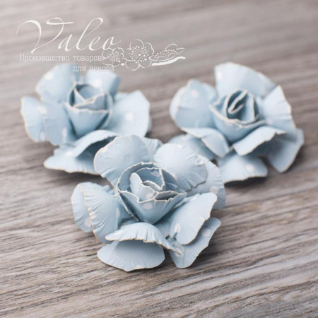 Набір паперових троянд блакитного кольору українського виробника декору Valeo. Розмір квітки 40мм. У наборі 3 троянди. Прекрасна прикраса для запрошень, листівок, сторінок альбомів.