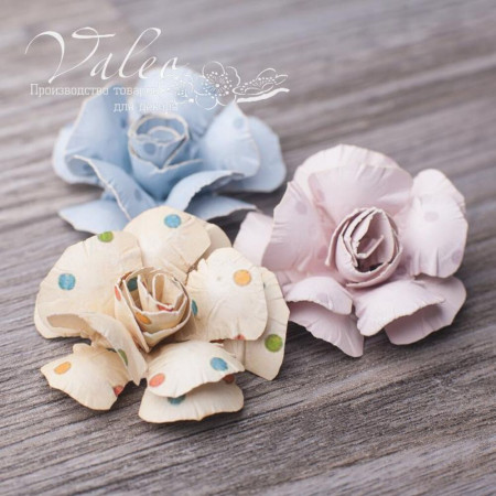 Набір паперових троянд різних кольорів мікс українського виробника декору Valeo. Розмір квітки 40мм. У наборі 3 троянди. Прекрасна прикраса для запрошень, листівок, сторінок альбомів.