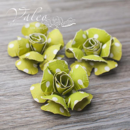 Набір паперових троянд оливкового кольору із малюнком горох українського виробника декору Valeo. Розмір квітки 40мм. У наборі 3 троянди. Прекрасна прикраса для запрошень, листівок, сторінок альбомів.
