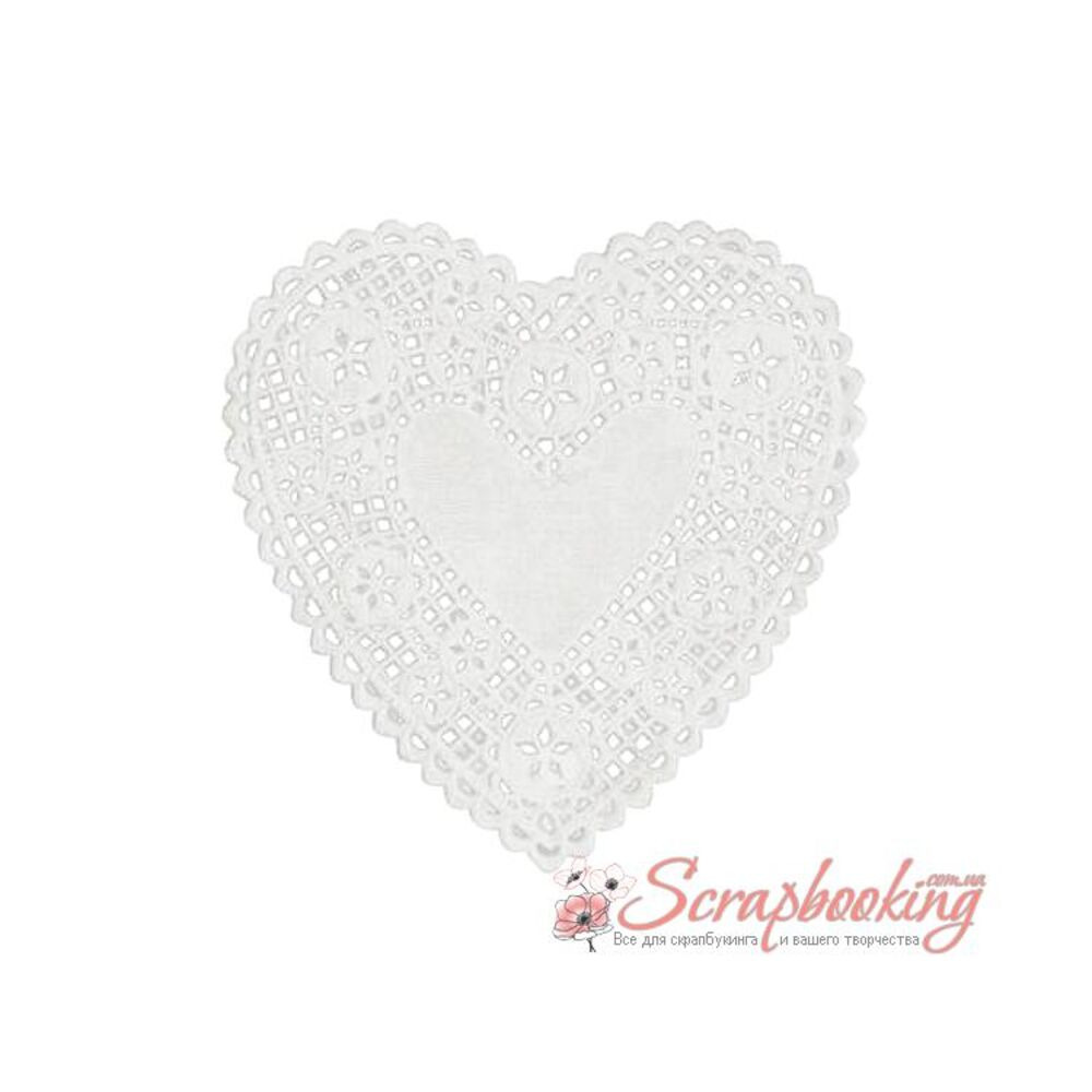 Набір мереживних серветок білого кольору у формі серця. В упаковці 24 серветки розміром 10см.