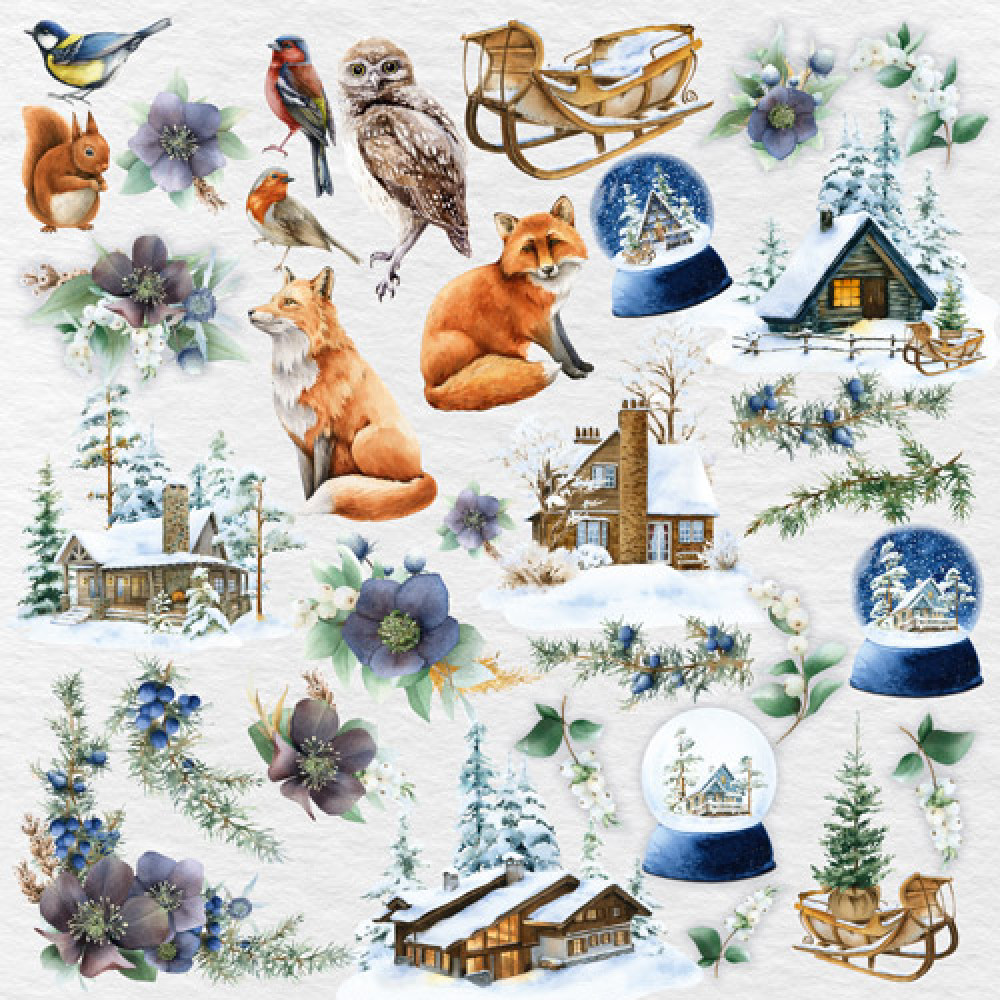 "Country winter" — набір двосторонньго паперу для срапбукінгу, щільністю 200г/м, розміром 20см х 20см.