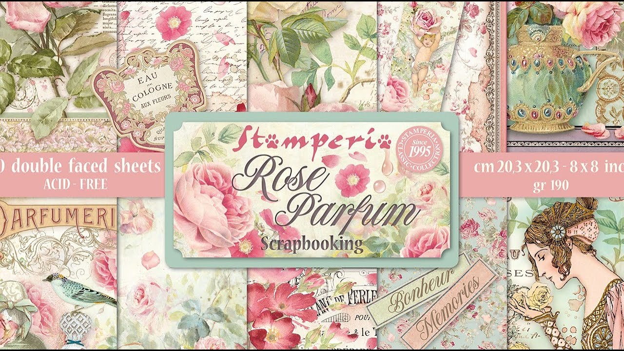 Набір паперу для скрапбукінгу з колекції Rose Parfum від виробника Stamperia. У наборі 10 двосторонніх аркушів паперу щільністю 190гр/м2