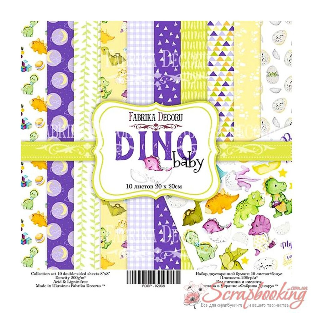Набір двостороннього дитячого паперу з динозаврами з колекції "Dino baby" розміром 20*20см виробника Фабрика декору.