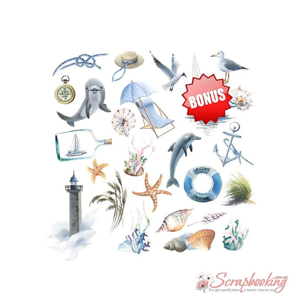 "Memories of the sea"- набір двостороннього паперу для скрапбукінгу з розмірами сторін 20см х 20см (8"x8") щільністю 200г/м.