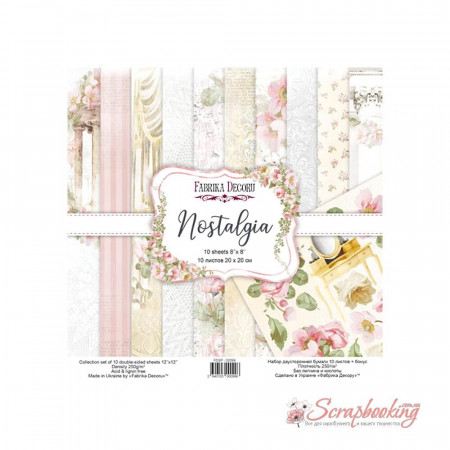 "Nostalgia" - набір двостороннього паперу для скрапбукінгу з розмірами сторін 20см х 20см (8"x8") щільністю 200г/м.