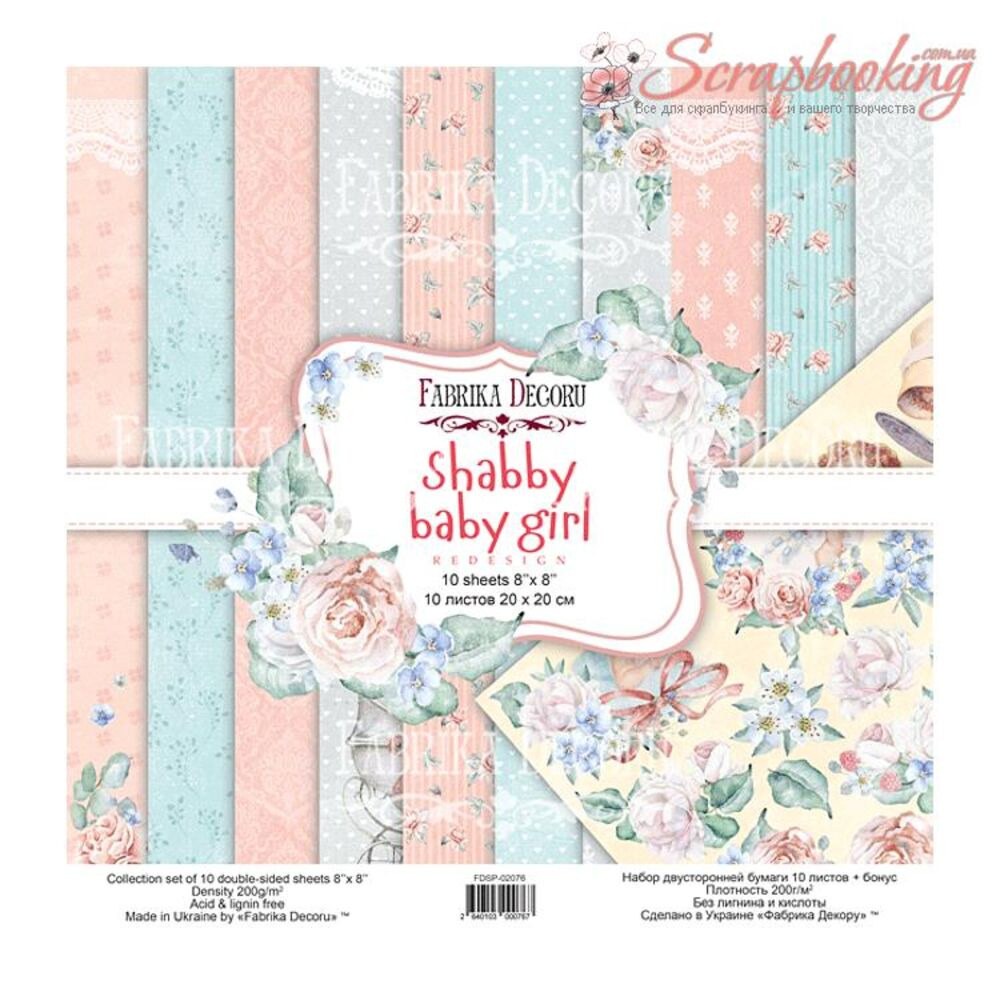 "Shabby baby girl redesign" - набір двостороннього паперу 20см х 20см (8"x8") щільністю 200г/м.