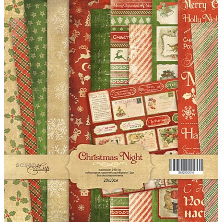 Набір різдвяного одностороннього паперу щільністю 190гр/м2 Christmas Night розміром 20*20см від виробника Scrapmir. Підібрані за тематикою аркуші паперу дозволять Вам легко та невимушено виготовити альбом зі спогадами про святкування Нового Року та Різдва