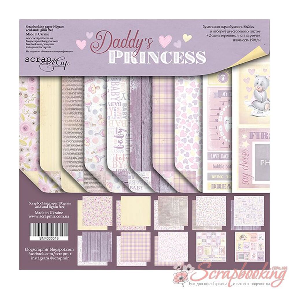 Набір двостороннього паперу щільністю 190гр/м2 Daddy's Princess розміром 20*20см від виробника Scrapmir. Підібрані за тематикою аркуші паперу дозволять Вам легко та невимушено виготовити альбом. Архівна якість.