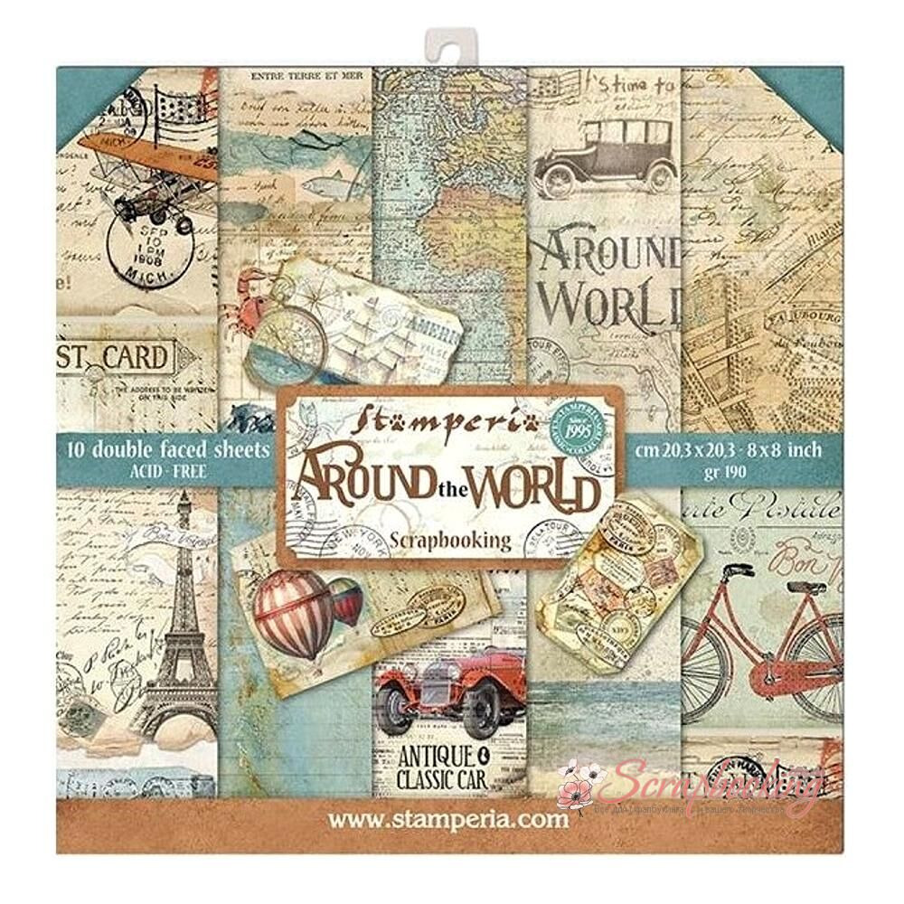 Набір паперу для скрапбукінгу з колекції Around The World від виробника Stamperia. У наборі 10 двосторонніх аркушів паперу щільністю 190гр/м2