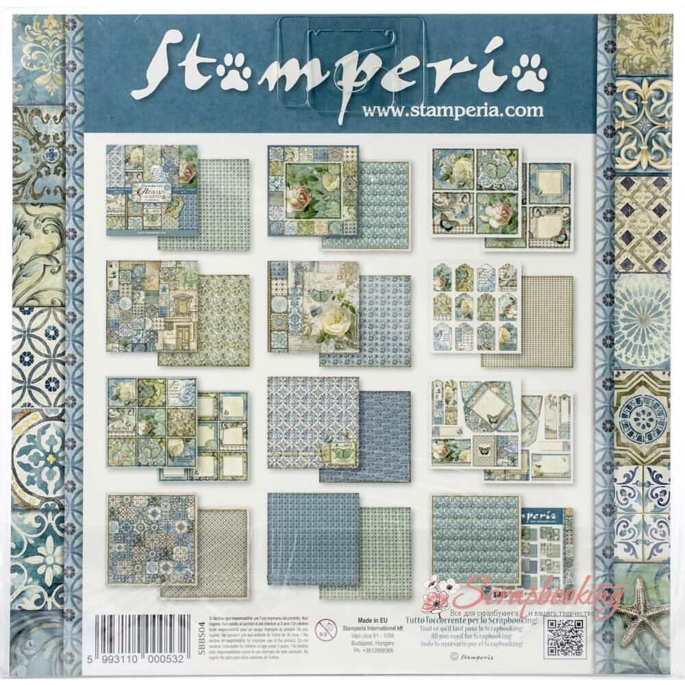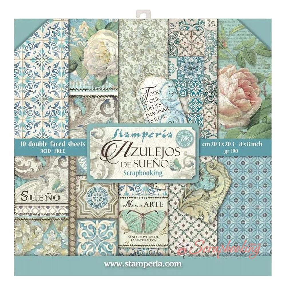 Набір паперу для скрапбукінгу з колекції Azulejos від виробника Stamperia. У наборі 10 двосторонніх аркушів паперу щільністю 190гр/м2