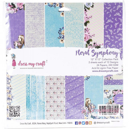 Набір паперу для скрапбукінгу розміром 30*30см Floral Symphony від виробника Dress My Crafts. У наборі 12 аркушів з одностороннім друком. Щільність паперу 240гр/м2. Архівна якість.