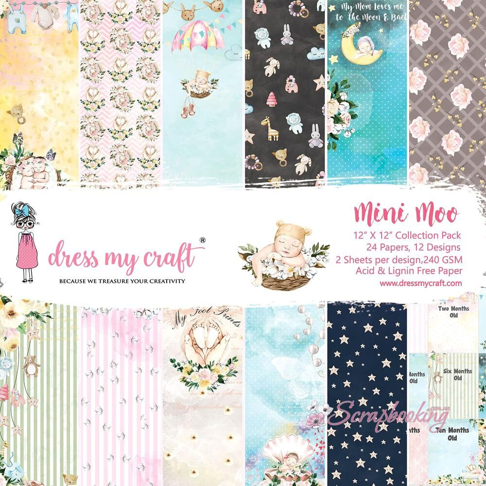Набір паперу для скрапбукінгу розміром 30*30см Charming Mini Moo від виробника Dress My Crafts. У наборі 12 аркушів з одностороннім друком. Щільність паперу 240гр/м2. Архівна якість.
