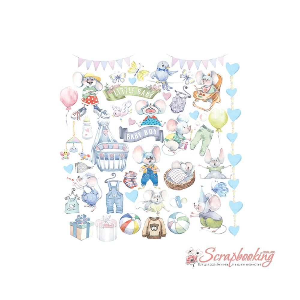 My little mousy boy - набір двостороннього паперу 30,5см х 30,5см (12"x12"), щільністю 200г/м. Це ніжна дитяча шеббі колекція для створення фотоальбомів із фотографіями малюків на їхній день народження або знаменних подій у їхньому житті. Колекція My little mousy boy може також використовуватись для створення вітальних листівок чи запрошень на дитяче свято.