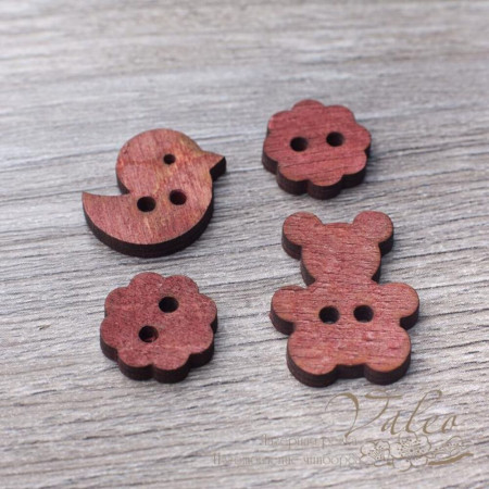 Набір дерев'яних ґудзичок бордового кольору. Розмір ґудзичок 16...27мм. В упаковці 4 ґудзички