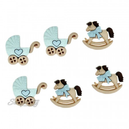 Гудзики Dress It Up - Horse & Buggy Boy, 6 шт, 5823. Розмір ґудзиків 2.3x2.5 та 2.5x2.7 см. Дизайн гудзиків може незначно відрізнятися