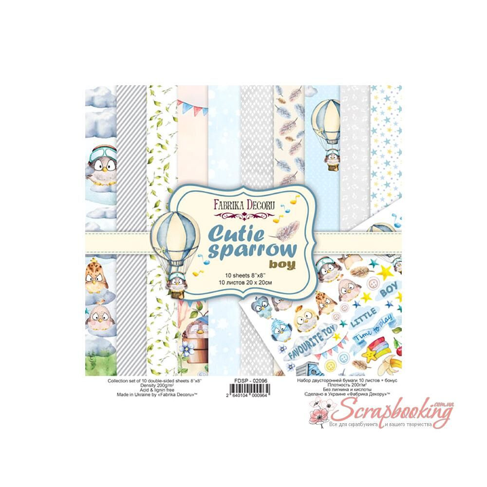 "Cutie sparrow boy"- набор двусторонней бумаги для скрапбукинга с размерами сторон 20см х 20см (8"x8") плотностью 200г/м.