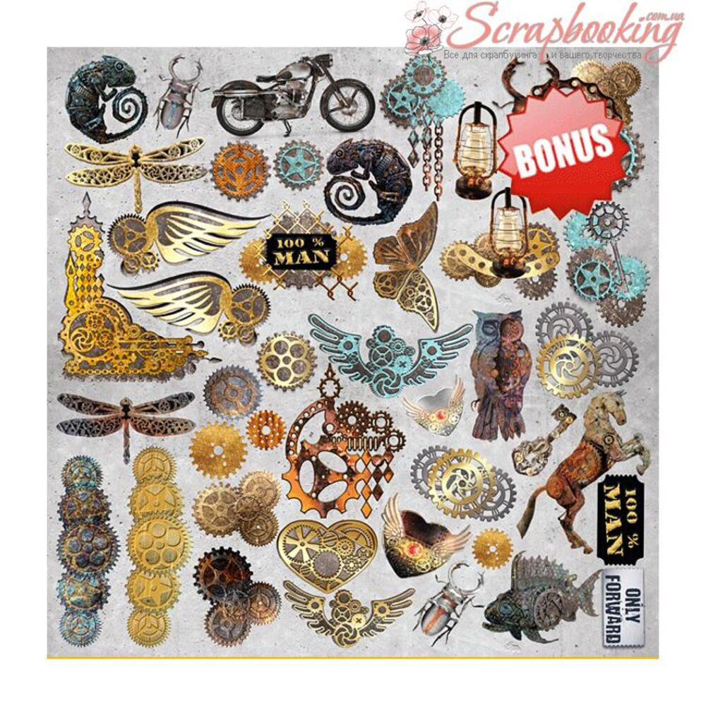 "Grunge&Mechanics"- набор двусторонней бумаги 20см х 20см (8"x8") плотностью 200г/м.