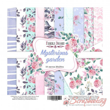 Набор двусторонней бумаги для скрапбукинга Mysterious garden размером 20*20см от производителя Фабрика декора. Набор состоит из 10 листов бумаги плотностью 200 гр/м2 плюс бонус-лист для вырезания. Бумага архивного качества