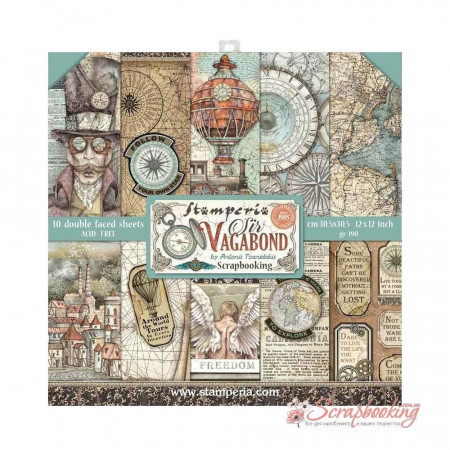 Набор бумаги для скрапбукинга из коллекции Sir Vagabond от производителя Stamperia. В наборе 10 двусторонних листов бумаги плотностью 190гр/м2