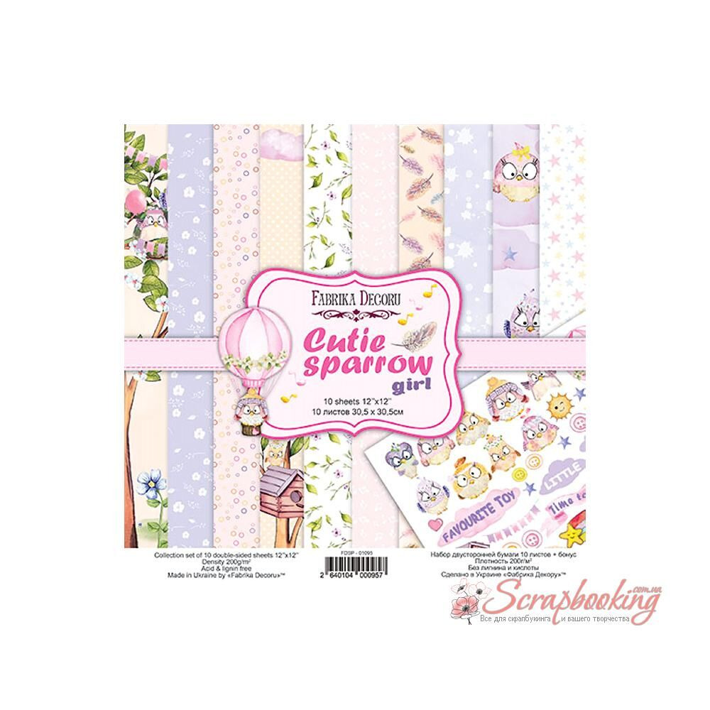 "Cutie sparrow girl"- это набор двусторонней бумаги для скрапбукинга с размерами сторон 30,5см х 30,5см (12"x12"), плотностью 200г/м.