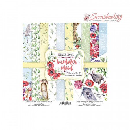 "Summer mood" - набор двусторонней бумаги 30,5см х 30,5см (12"x12"), плотностью 250г/м.