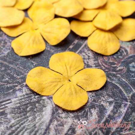 Набор бумажных гортензий желтого цвета. В упаковке 10 гортензий размером 25мм.
