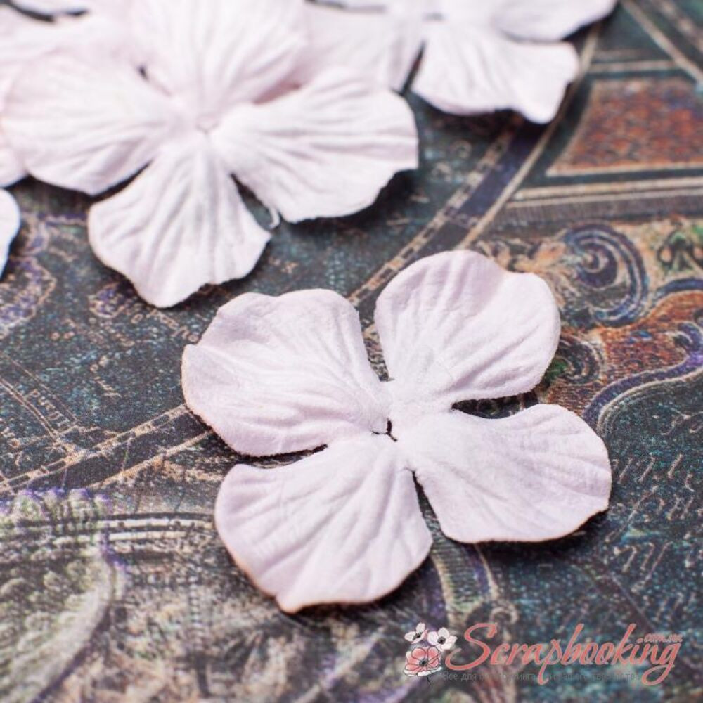 Набор бумажных гортензий светло-розового цвета. В упаковке 5 гортензий размером 32мм.