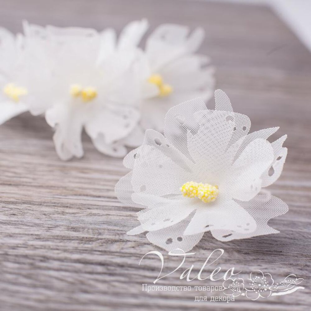 Декоративные тканевые Незабудки ручной работы от производителя Valeo. В упаковке 5 цветков белого цвета размером 4.5см.