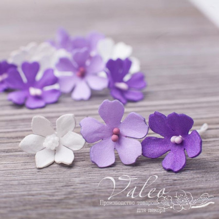 Набор полевых цветов ручной работы из фоамирана украинского производителя декора Valeo. В наборе 12 цветочков белого, сиреневого, фиолетового цвета размером 20*20мм. Прекрасное украшение для пригласительных, открыток, страничек альбомов.