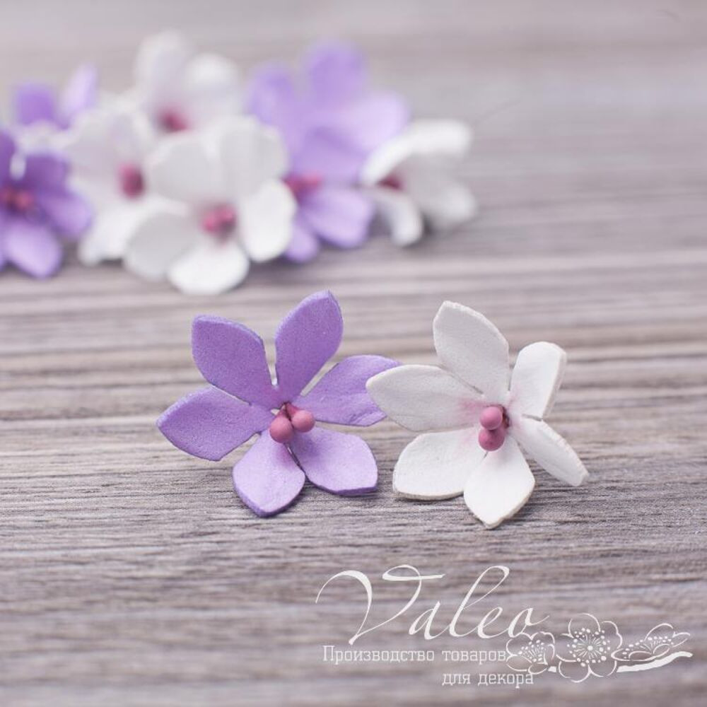 Набор полевых цветов ручной работы из фоамирана украинского производителя декора Valeo. В наборе 12 цветочков белого, сиреневого цвета размером 20*20мм. Прекрасное украшение для пригласительных, открыток, страничек альбомов.