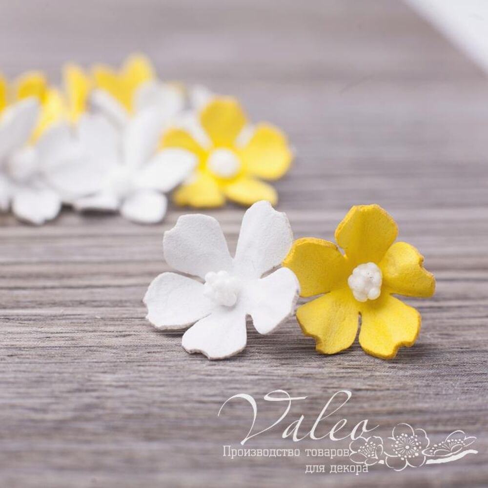 Набор полевых цветов ручной работы из фоамирана украинского производителя декора Valeo. В наборе 12 цветочков белого, желтого цвета размером 20*20мм. Прекрасное украшение для пригласительных, открыток, страничек альбомов.