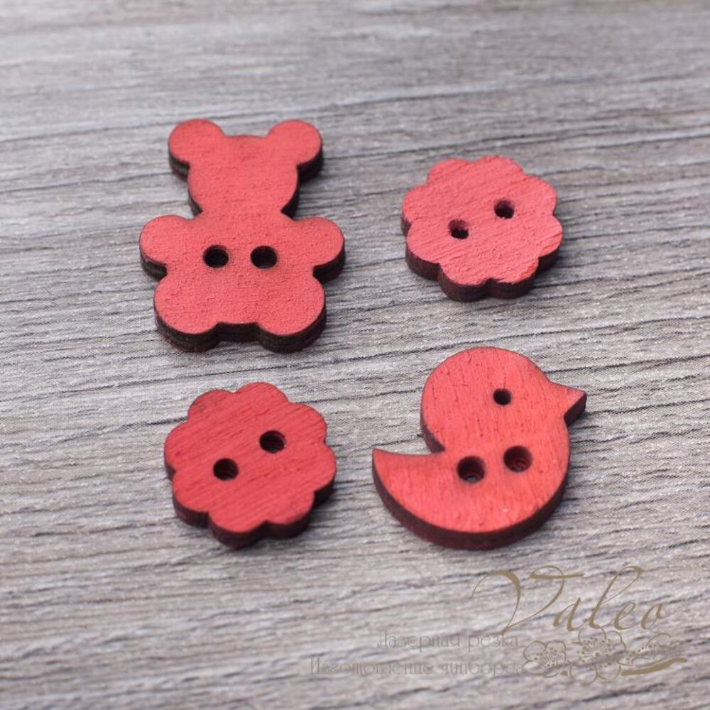 Набор деревянных пуговичек красного цвета. Размер пуговичек 16...27мм. В упаковке 4 пуговички