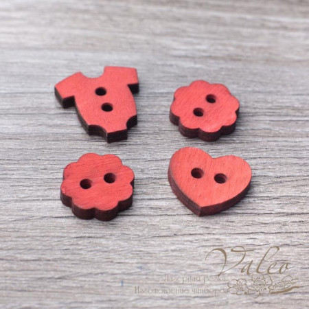 Набор деревянных пуговичек красного цвета. Размер пуговичек 16...27мм. В упаковке 4 пуговички