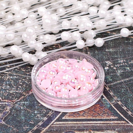 Напівбусини хамелеон рожевого кольору. Залежно від кута освітлення напівнамистини переливаються райдужними квітами. Діаметр напівбусини 4мм. В упаковці 100шт. Напівбусини запаковані в зип-пакет