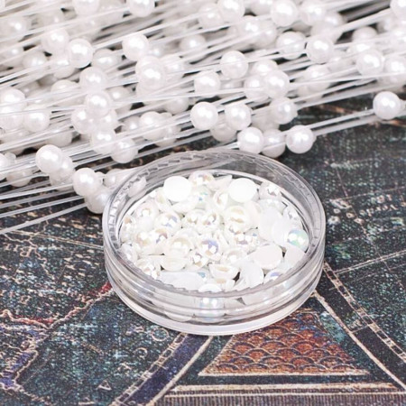 Напівбусини хамелеон кольору шампанського. Залежно від кута освітлення напівнамистини переливаються райдужними квітами. Діаметр напівбусини 4мм. В упаковці 100шт. Напівбусини запаковані в зип-пакет