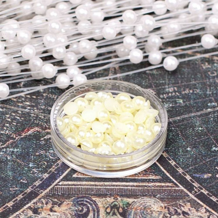 Перламутрові напівнамистини кремового кольору. Діаметр напівбусини 4мм. В упаковці 100шт. Напівбусини запаковані в зип-пакет