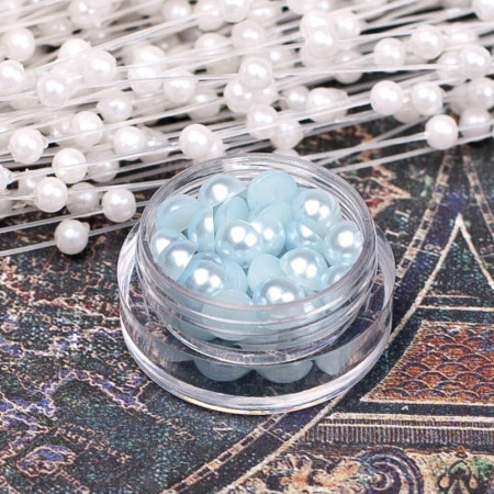 Перламутрові напівнамистини блакитного кольору. Діаметр напівбусини 6мм. В упаковці 100шт. Напівбусини запаковані в зип-пакет
