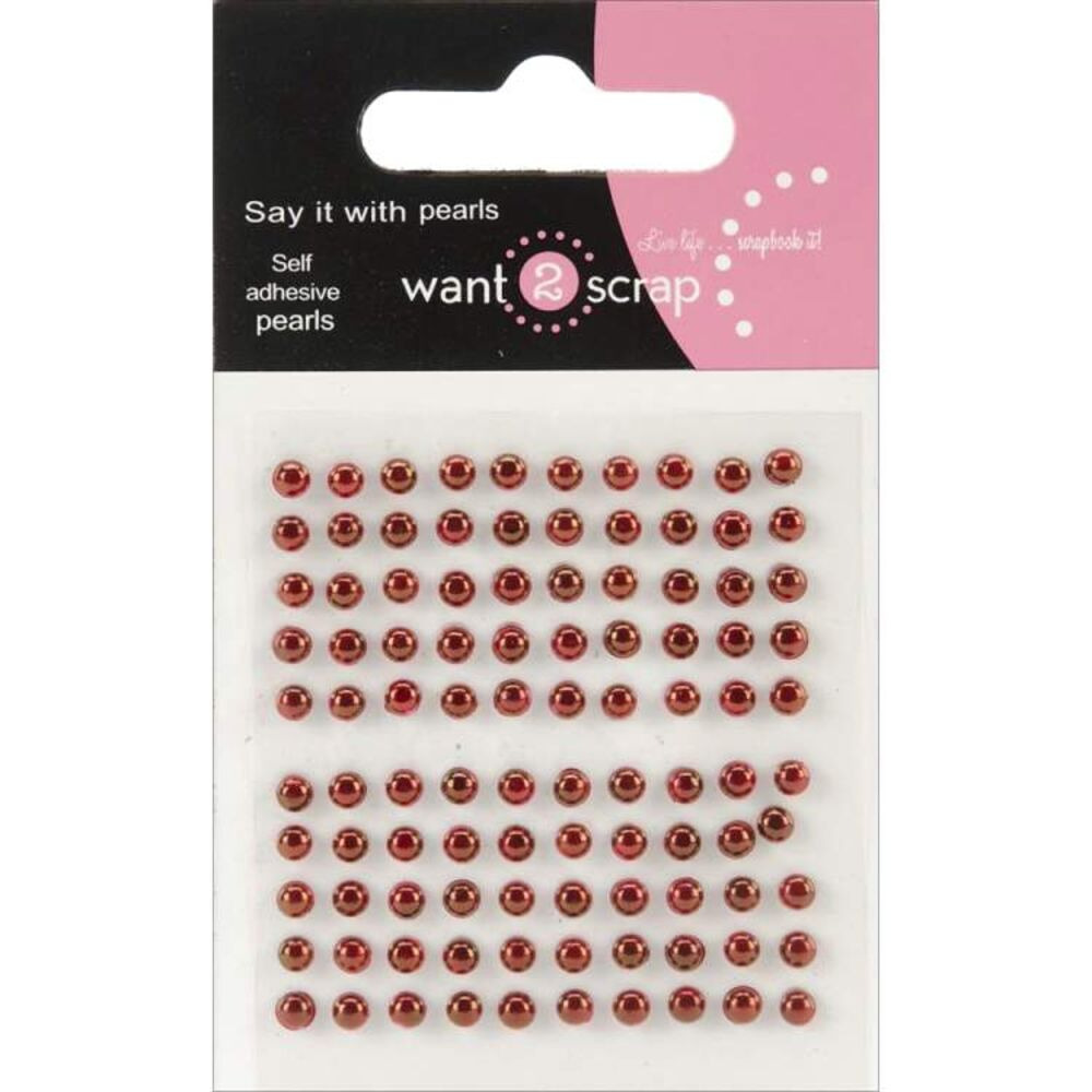 Перламутрові напівнамистини червоного кольору на клейовій основі від виробника Want2Scrap. В упаковці 100 напівнамистин розміром 3мм