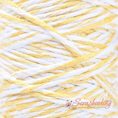 Двокольорова декоративна нитка товщиною 2 мм. Колір нитки: біло-жовтий. Нитку можна використовувати при упаковці подарунків, в якості декоративного при виготовленні листівок, альбомів, блокнотів.
