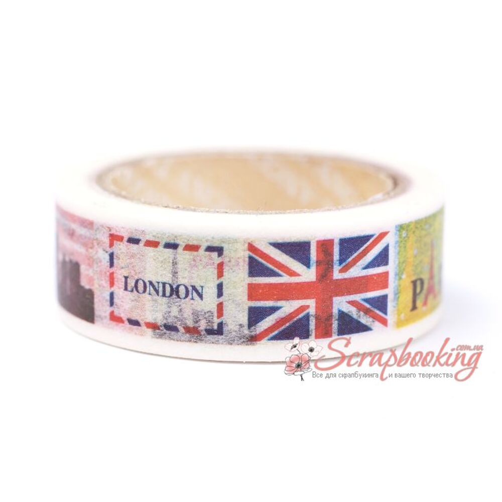 Декоративний паперовий скотч Washi Tape Masking Tape AMT08 Лондон Париж Нью-Йорк виробника Angoo. Ширина скотчу 15мм. Довжина скотчу у рулоні 10метрів. Використовується для оформлення листівок та альбомів, для упаковки подарунків, при декоруванні предметів інтер'єру