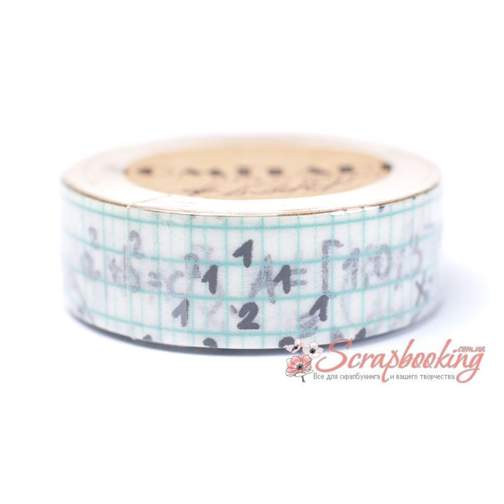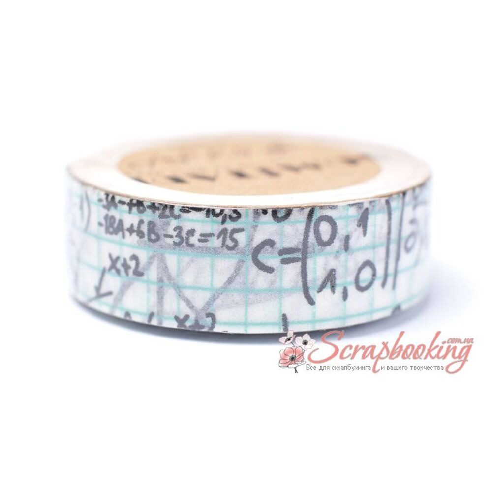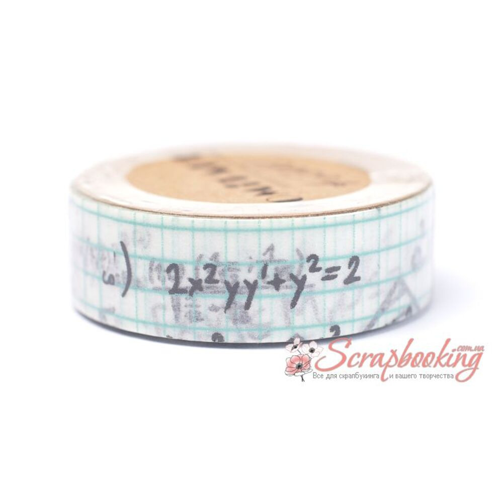 Декоративний паперовий скотч Washi Tape ST23 рівняння. Ширина скотчу 15мм. Довжина скотчу у рулоні 10метрів. Використовується для оформлення листівок та альбомів, для упаковки подарунків, при декоруванні предметів інтер'єру