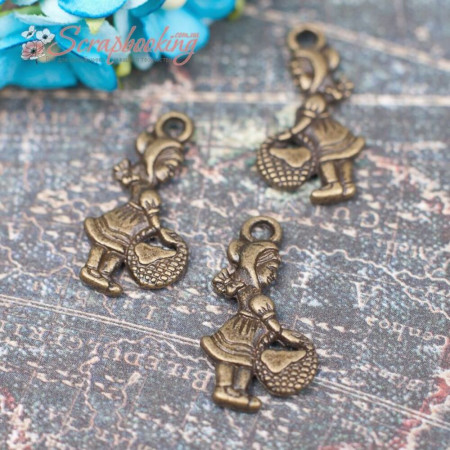 Металева підвіска бронзового кольору дівчинка розміром 22*11мм стане чудовою прикрасою для Ваших робіт. Ціна за 1шт.