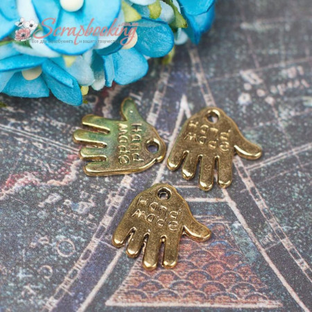 Металева підвіска золотого кольору Hand Made розміром 11*12мм стане чудовою прикрасою для Ваших робіт. Ціна за 1шт.