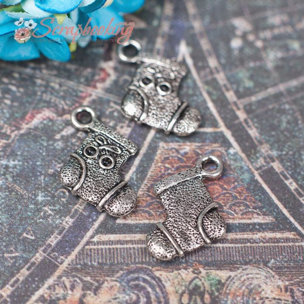 Металева підвіска сріблястого кольору новорічний чобіт розміром 13*16*2мм стане чудовою прикрасою для Ваших робіт.Ціна за 1шт.